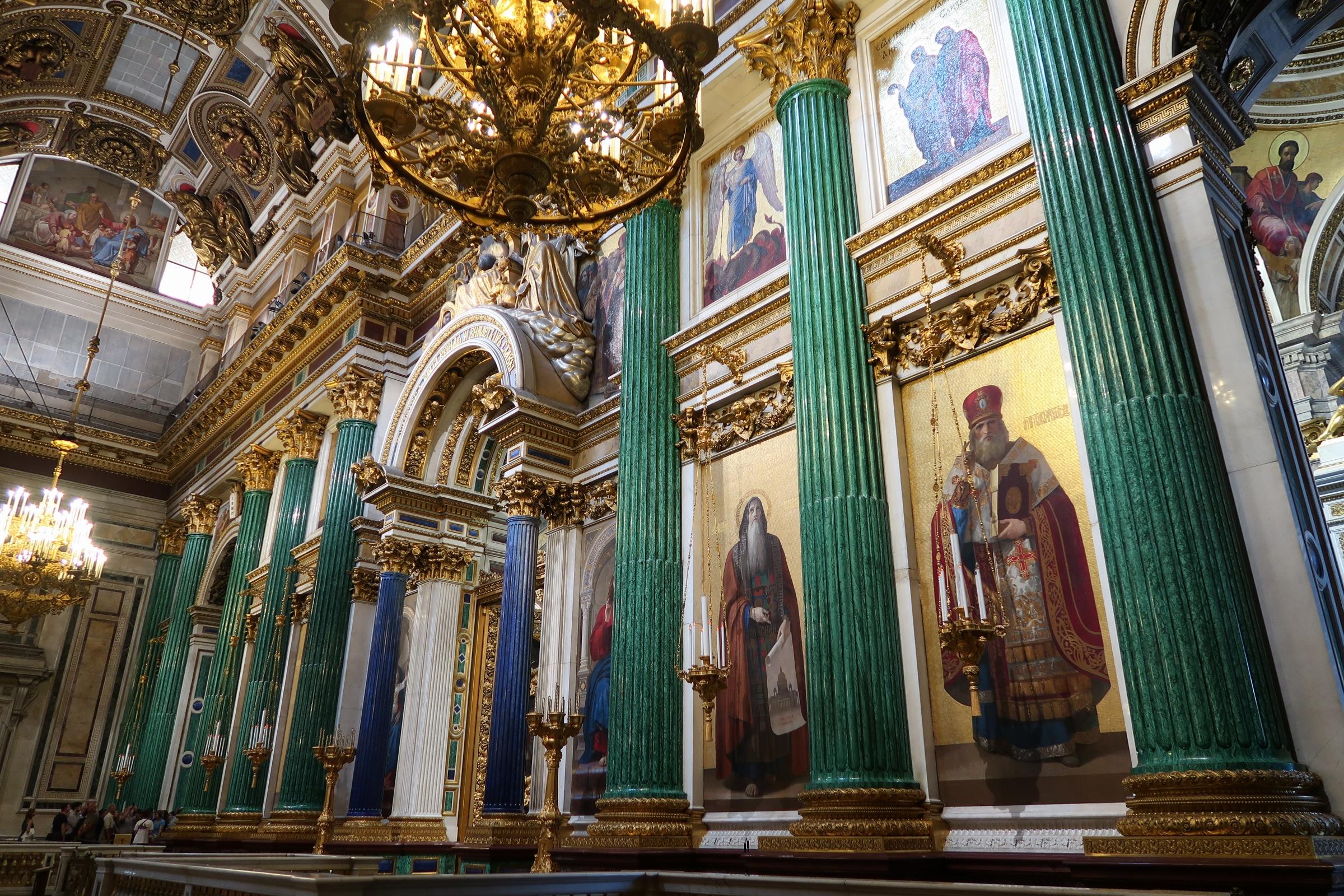 Sentant que les musées commençaient à m’user, direction une cathédrale (généralement c’est le bon plan pour se poser au calme) et pas n’importe laquelle : la cathédrale orthodoxe de Saint Isaac, construite courant XIXème et parmi les plus grandes d’Europe. Et bien pour le calme on repassera… aucune notion de recueillement, du tourisme à l’état pur car vous savez quoi ? C’est un musée en fait ! … bon, au moins les colonnes couvertes de malachite et de lapis-lazuli font leur petit effet, c’est déjà ça.
