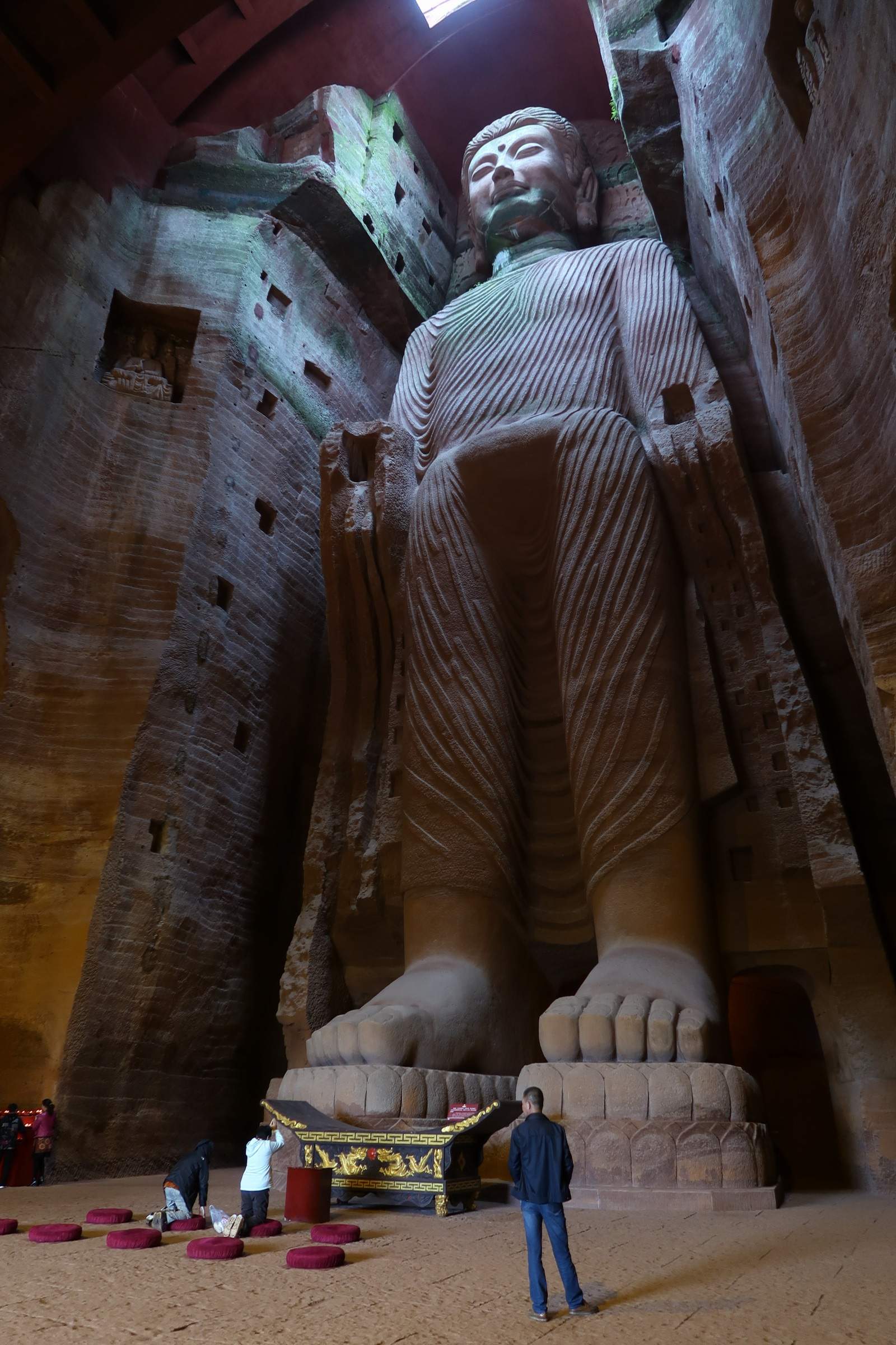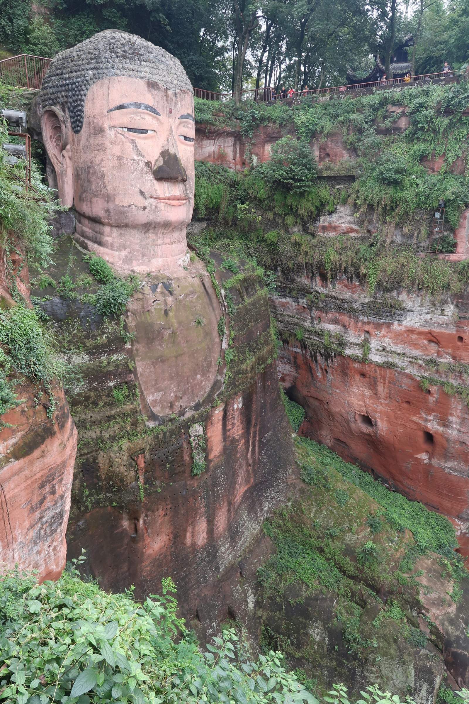 Leshan à été un des premiers foyers bouddhiques en Chine (Ier siècle) et possède la plus grande statue de Buddha au monde. Le bestiau a été creusé à même la montagne vers la fin du VIIIeme et fait 71m de haut, autant dire qu’il provoque son petit effet.