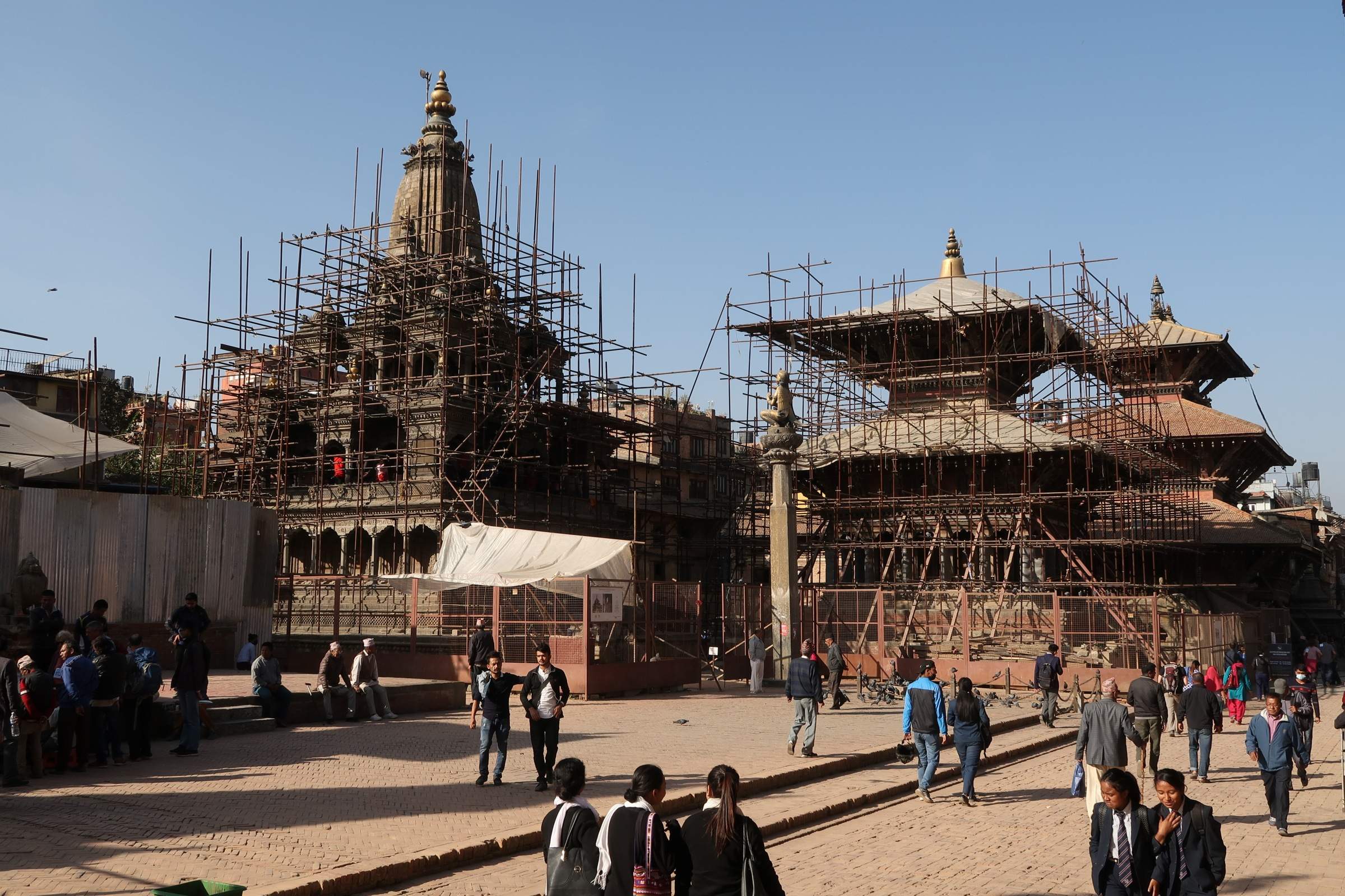 Les séquelles du séisme de 2015 sont toujours visibles – même dans les sites touristiques majeurs que je viens de citer – : plusieurs bâtiments sont encore au sol ou en cours de rénovation/ reconstruction.