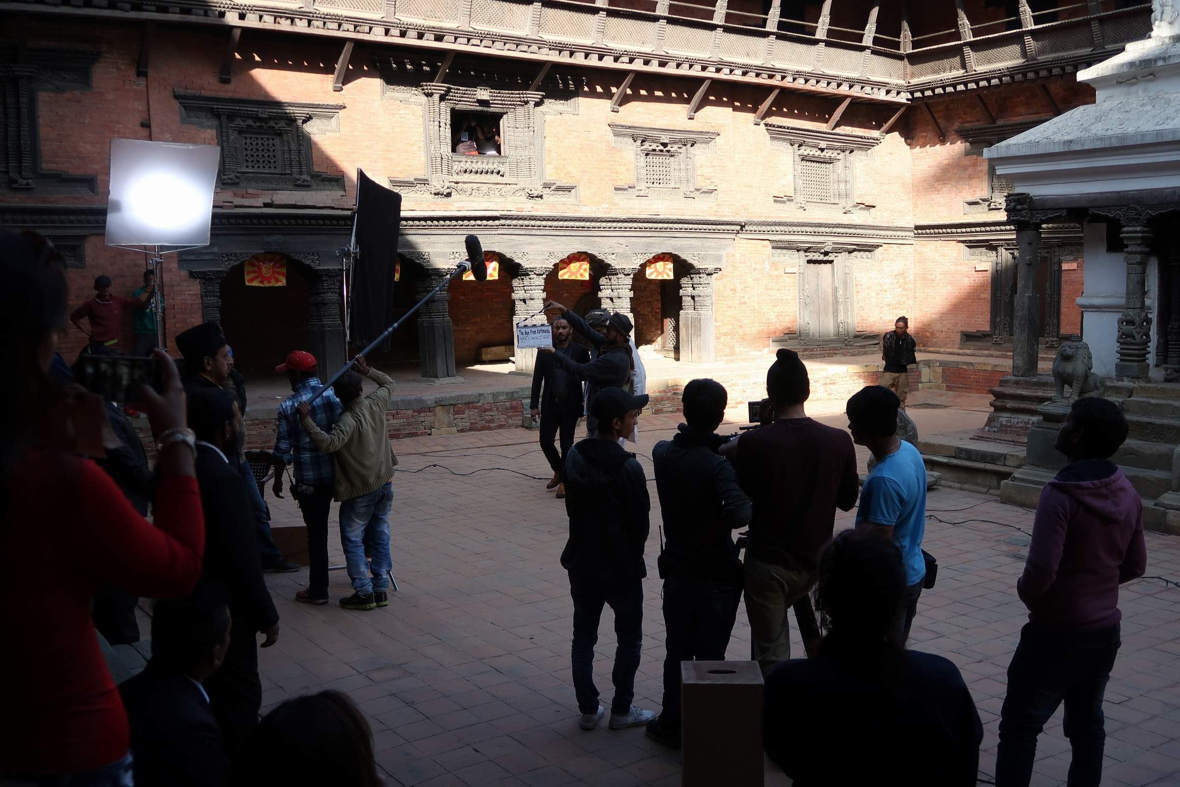 Patan – située à 6km du centre de Katmandou – était autrefois une ville royale. Elle a également morflé. Lors de ma visite du palais  (enfin… des quelques endroits accessibles…), un film était en plein tournage dans le cloître principal ; ils ne cherchaient pas de figurant, dommage ! 🙁