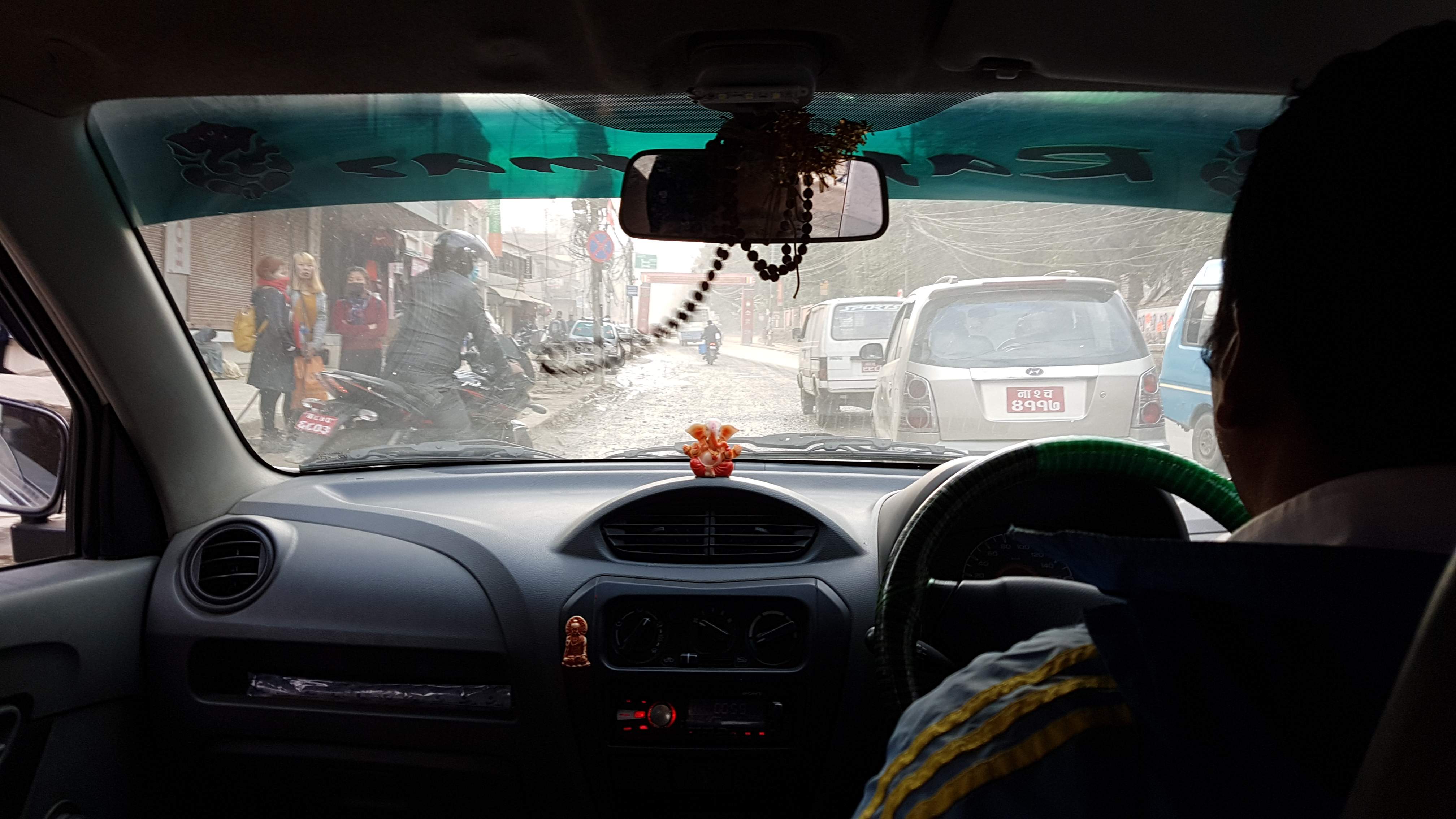 Le taxi au retour de Bodhnath, sous la protection de Ganesh et Bouddha