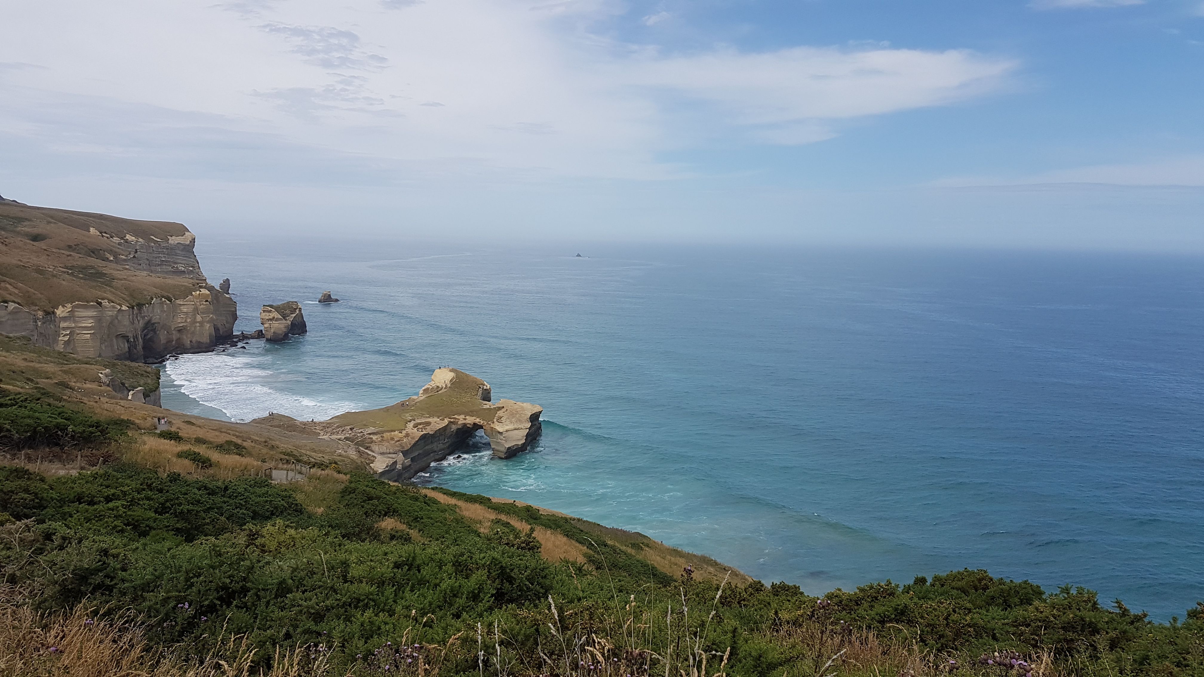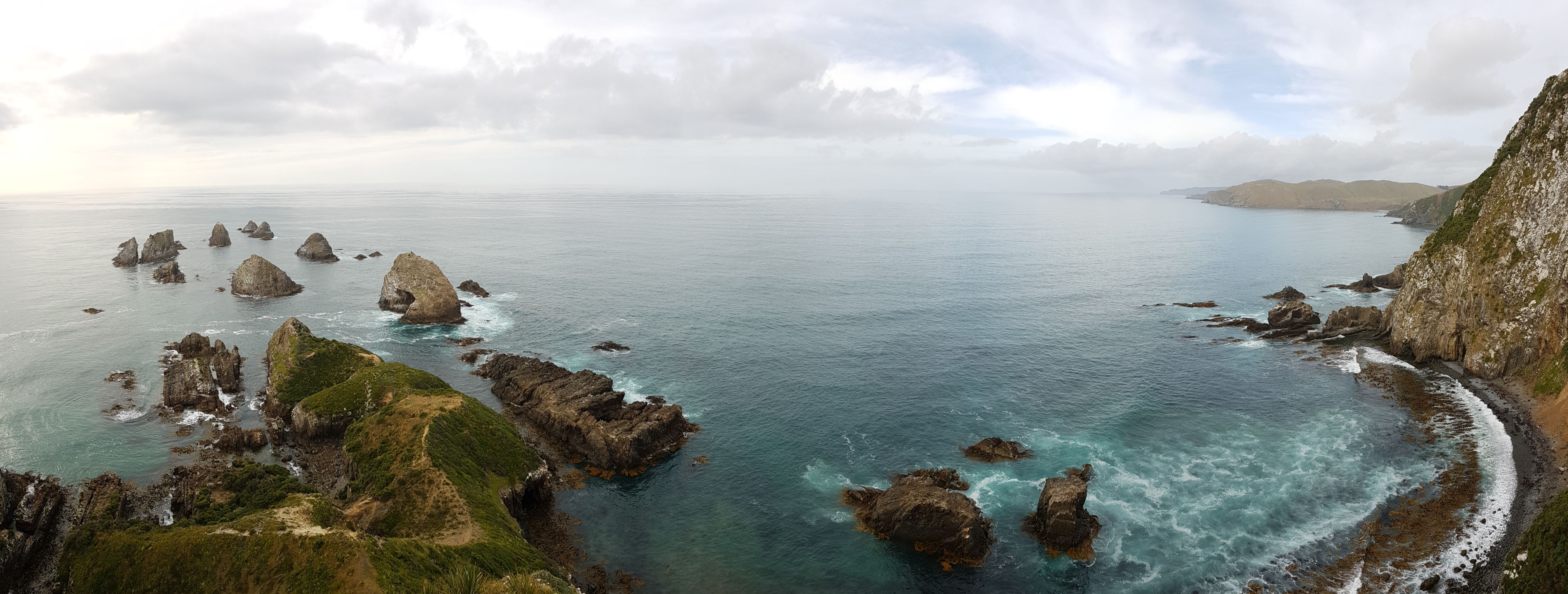 J’ai ensuite longé la côte jusqu’à la « grosse » ville de l’extrémité Sud (50.000 hab.) en enchaînant les arrêts pour voir quelques falaises/plages/chutes/forêts petrifiées et points notables tel que le « point le plus au Sud de l’île du Sud » (qui n’est pas le point le plus au Sud du pays puisqu’il reste l’île Stewart). Beau temps, belles vues ; rien à rajouter.