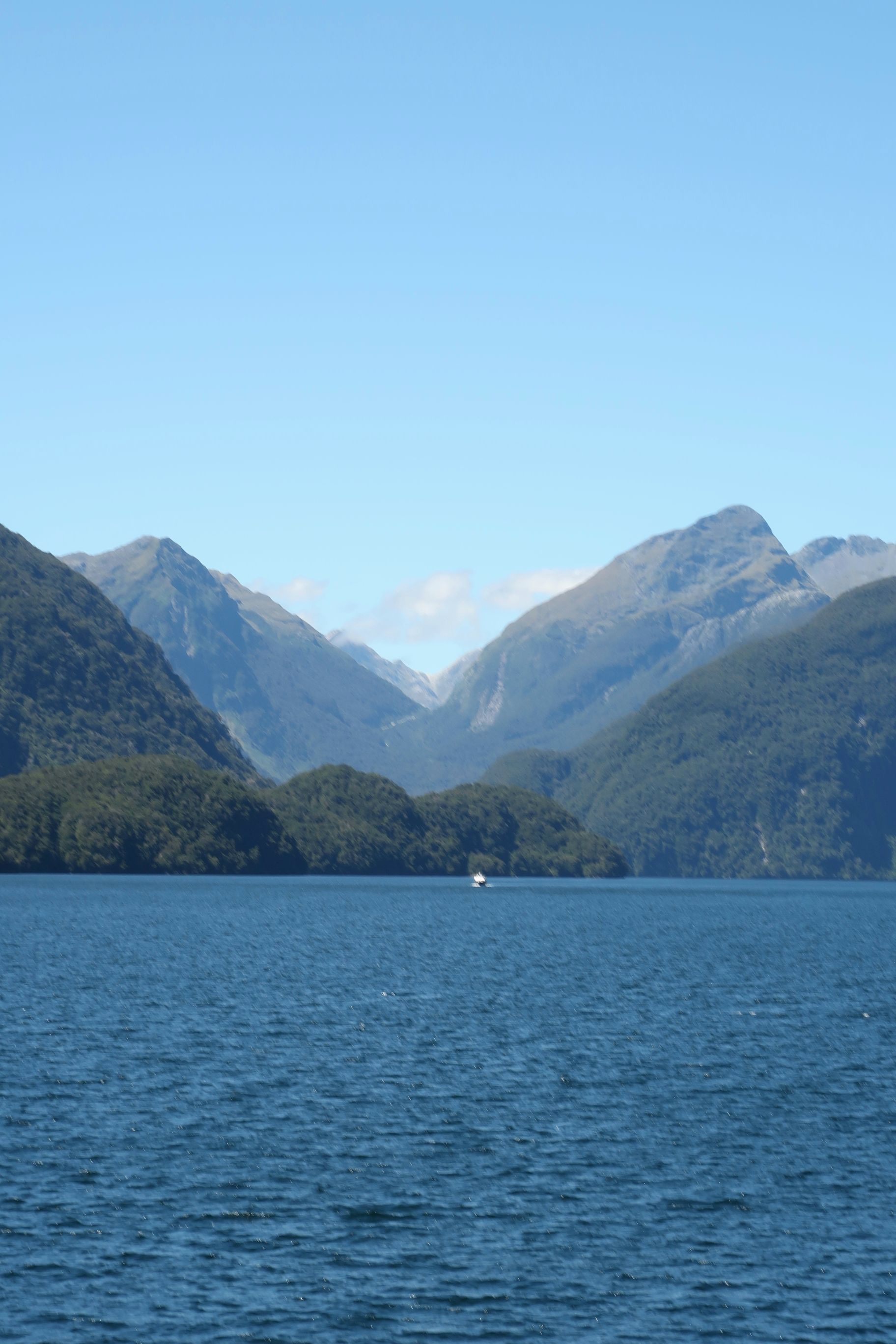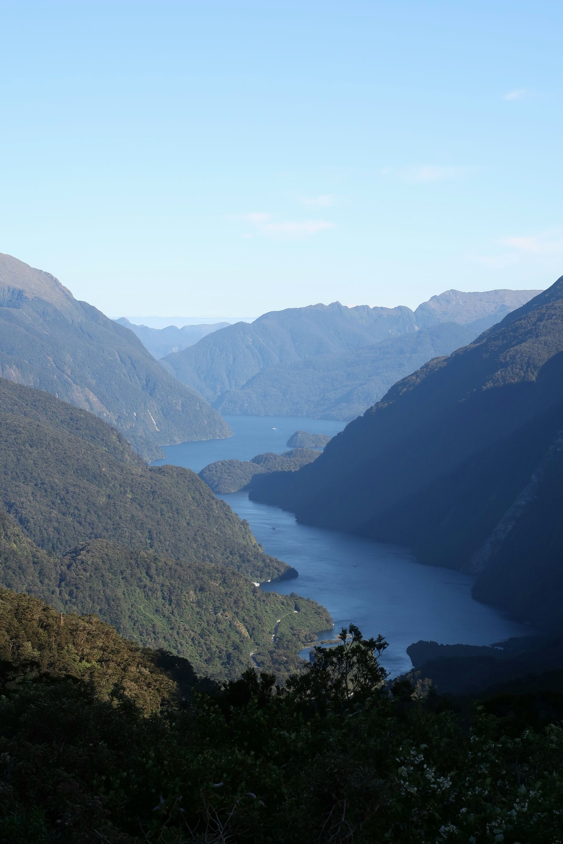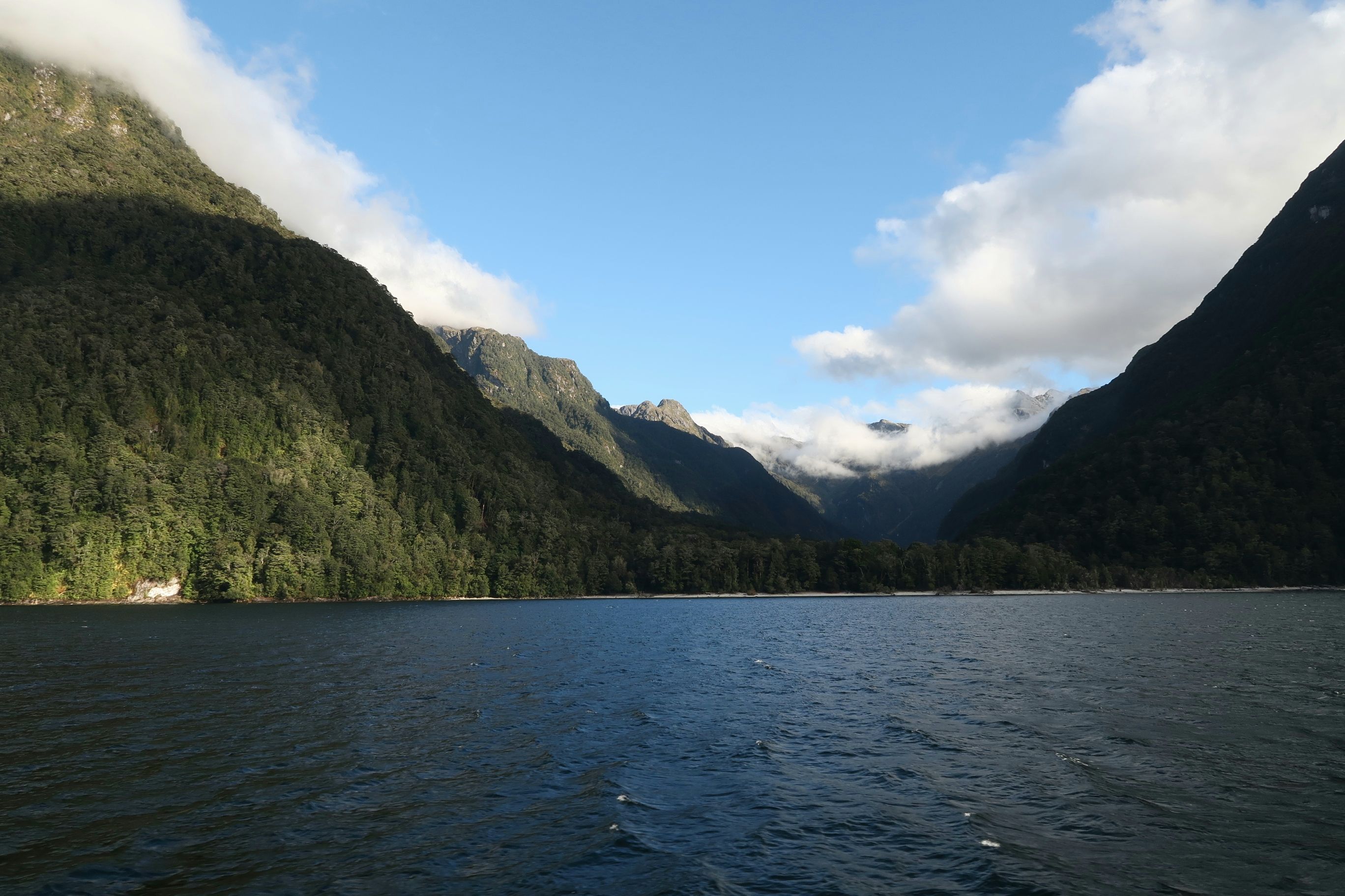 La météo du lendemain annonçant du beau temps dans le Doubtful Sound – chose extrêmement rare pour cette région – j’ai réservé une journée de croisière pour aller voir ce fjord relativement peu visité. Pour y arriver il faut d’abord traverser le lac Manapuri (45min), puis prendre un bus (1h) pour enfin arriver au ponton d’embarquement pour le tour du fjord.