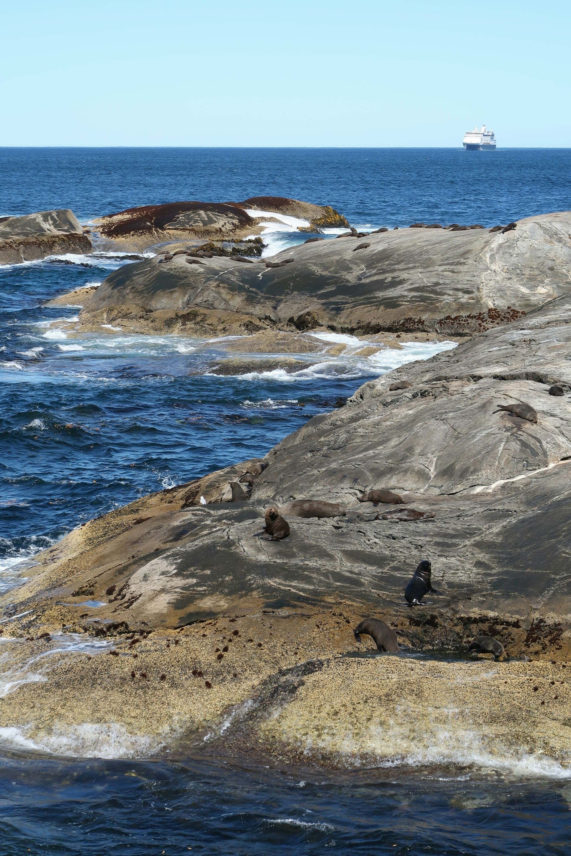 L’excursion c’est passé sous un ciel si dégagé que ça avait l’air d’étonner les guides et cela nous a même permis d’aller un peu plus loin que le circuit habituel (soit-disant). On a fait un aller-retour jusqu’à la mer de Tasman, vu quelques sceaux de mer faire bronzette et un navire de croisière (un gros, celui pour les riches) pénétrer dans le fjord depuis la mer.