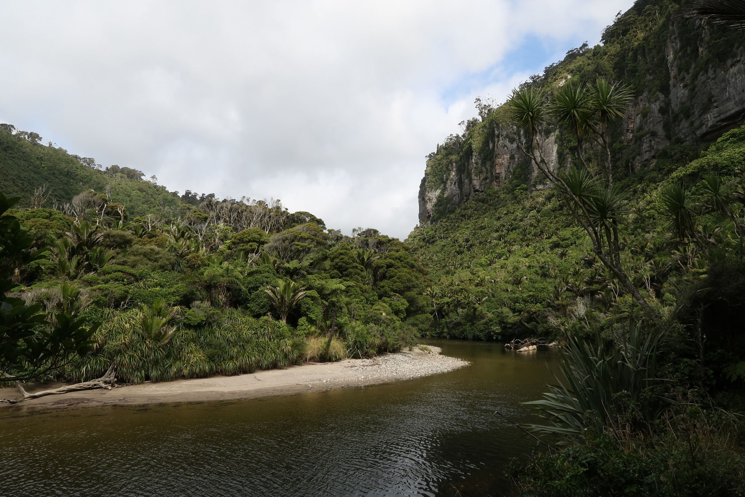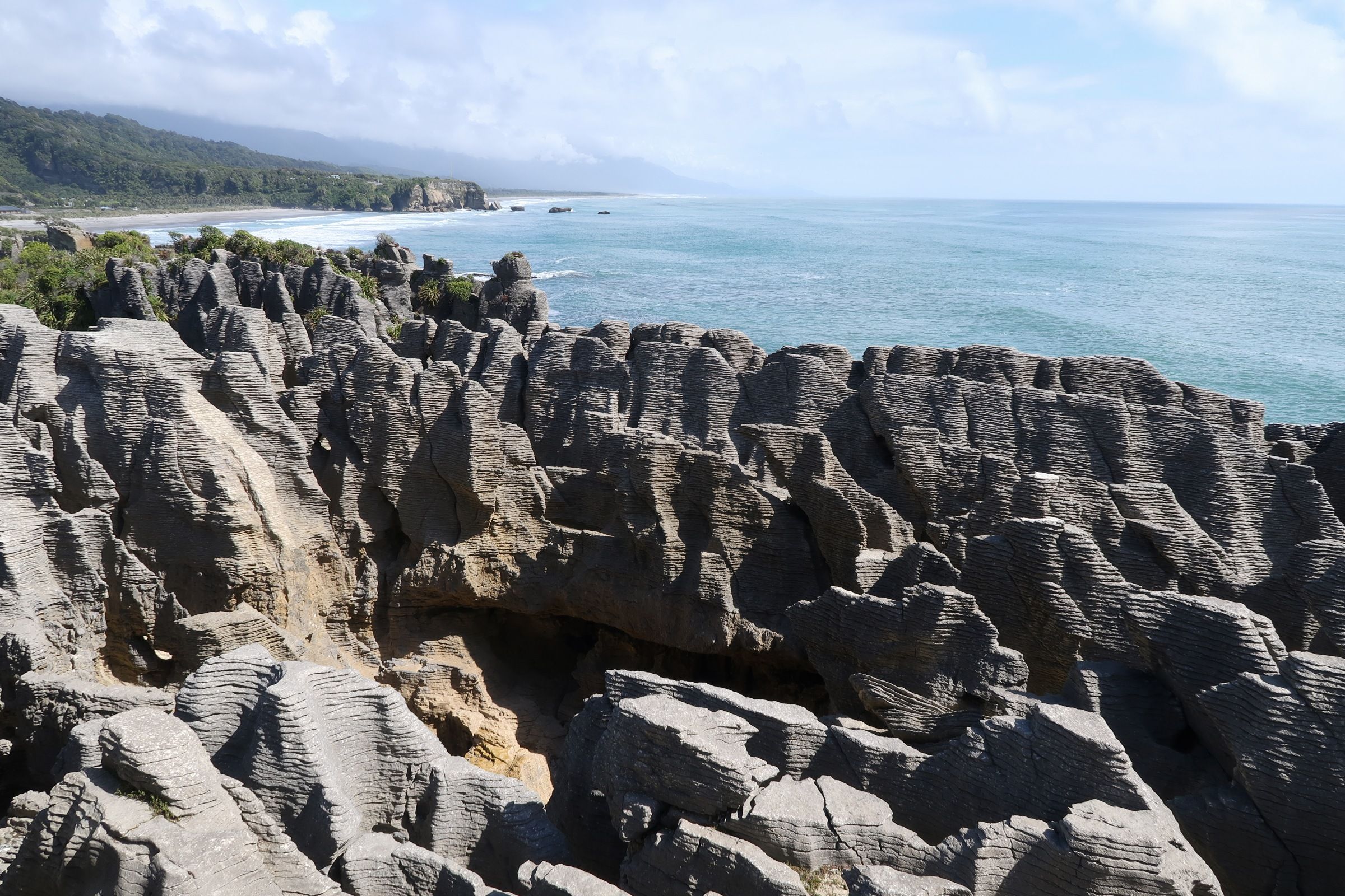 Pancake Rocks : une curiosité géologique nommée de manière assez explicite. J’ai également commencé une balade le long de la rivière Pororari située juste à côté mais la vue n’était pas très intéressante alors j’ai continué ma remontée de la SH6 (la voie rapide qui longe toute la côte).