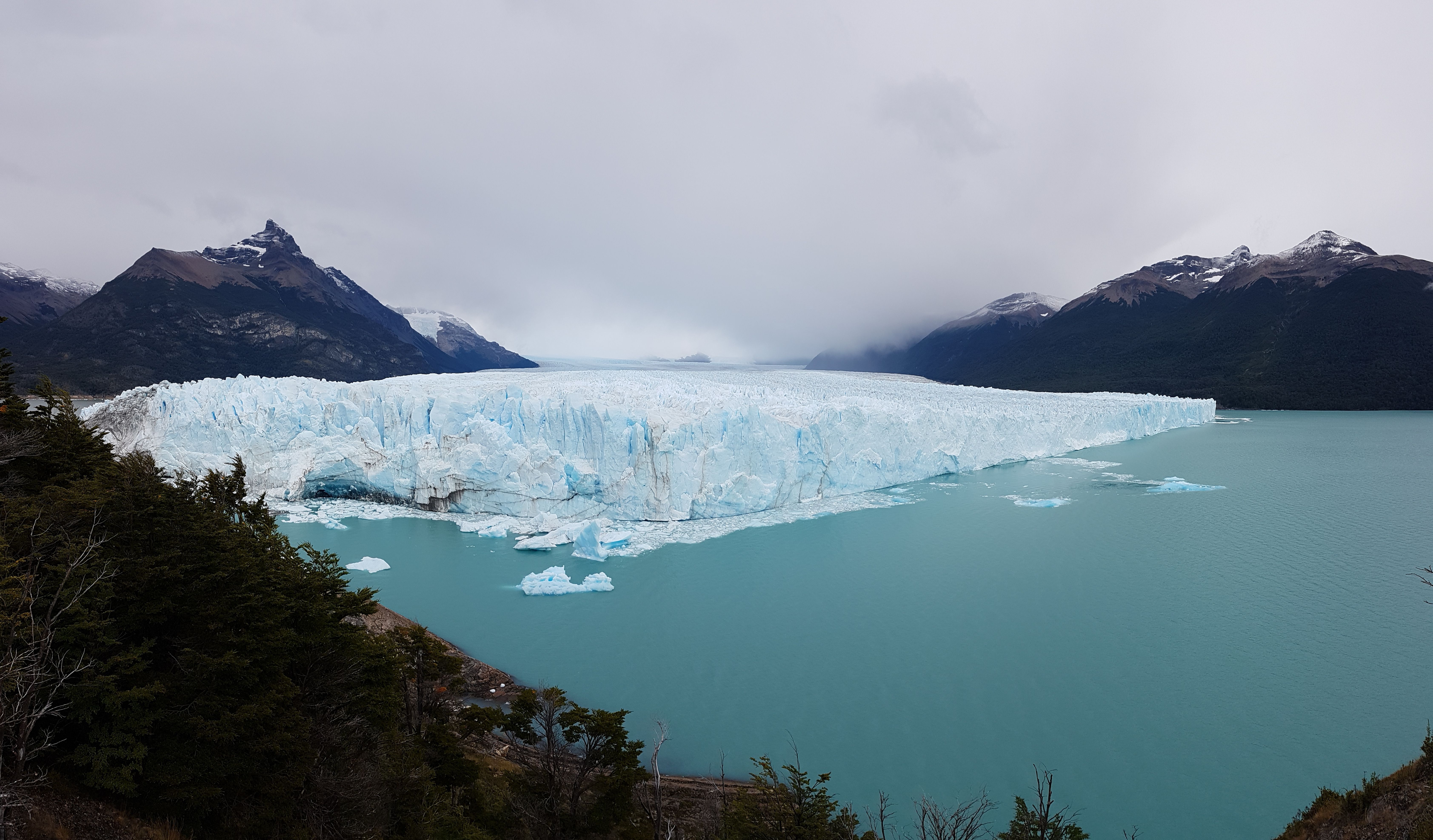 Le Perito Moreno n’est pas le plus grand (juste 50 à 70m de hauteur au niveau du front et 5km de largeur, petit joueur) mais il a la particularité de continuer d’avancer malgré le réchauffement climatique ; ce faisant, des blocs se détachent fréquemment à l’avant. J’ai vu un glaçon de plusieurs dizaines de mètres tomber, spectacle accompagné d’un assourdissant bruit de tonnerre, impressionnant.