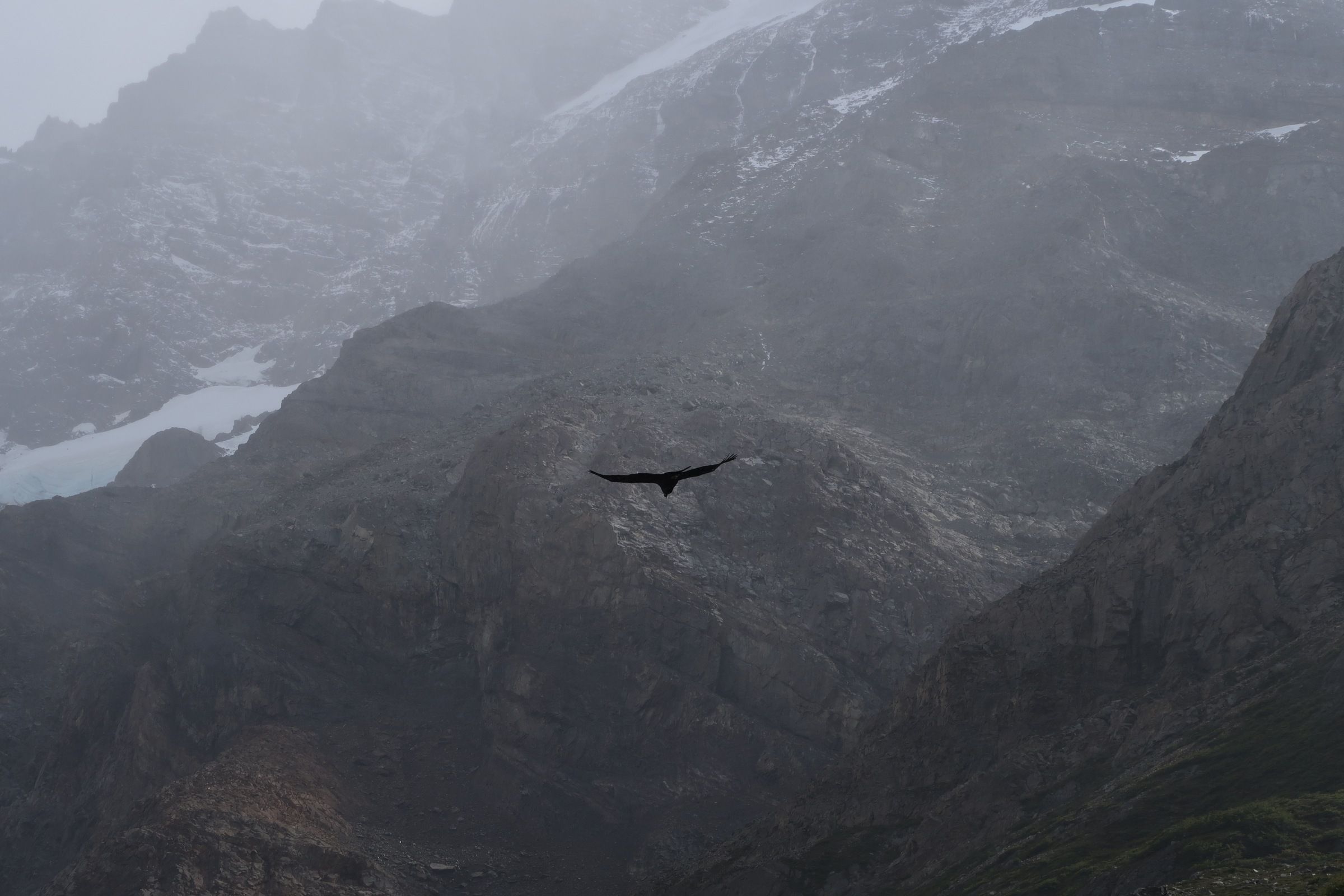 Départ aux aurores (8h) pour faire la randonnée jusqu’au Mirador Maestri avec l’espoir un peu fou que le ciel ne me tombe pas sur la tête. Depuis ce Mirador, il y a une jolie vue sur … sur … non, toujours pas ? … un glacier, évidemment ! (normalement on peut voir la chaîne de montagnes derrière mais le plafond était hélas trop bas). J’ai tout de même eu la chance d’arriver juste avant la pluie, avoir quelques rayons de soleil sur la glace (wouhouuu !) et voir de très près un condor (ce qui me relègue mécaniquement à l’argent). Bilan : 7h aller/retour, 300m de dénivelé, 22 km.