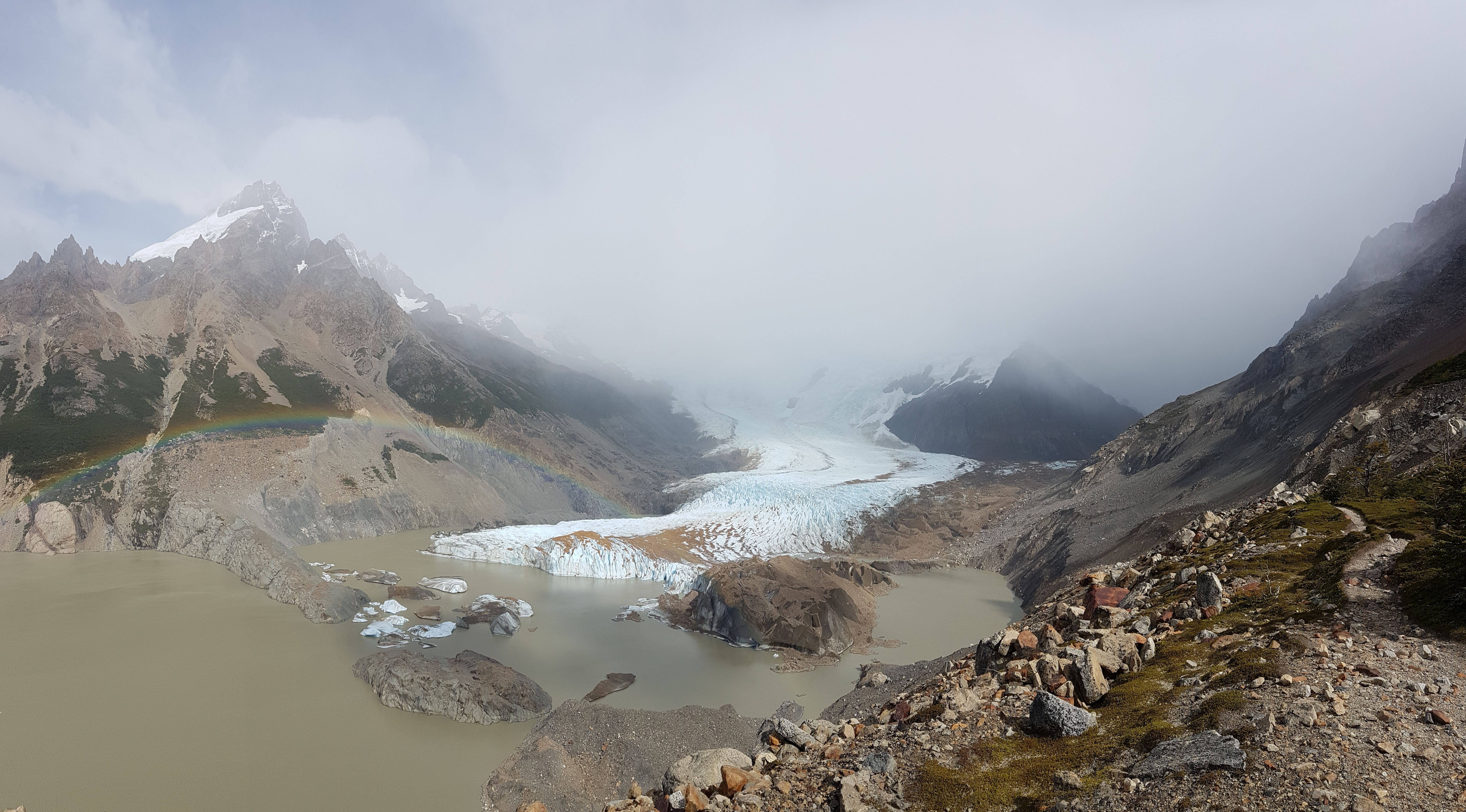 L’algorithme de la veille m’ayant plutôt réussi, j’entame une seconde longue randonnée tôt le matin afin d’aller voir le Fitz Roy. Peine perdue, il était dans les nuages. 6h de randonnée pour quelques vues sur des vallées sympas et un énième glacier depuis le mirador Piedras Blancas.