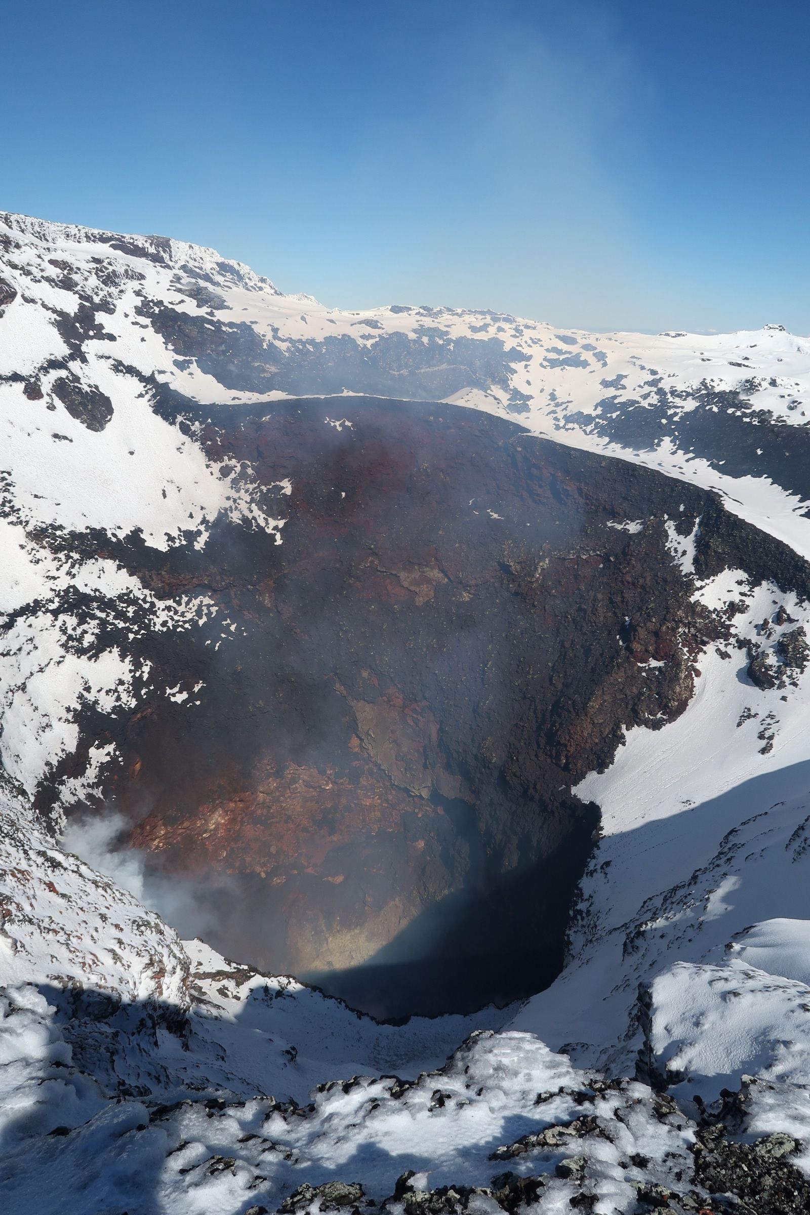 Selon les deux guides les conditions sont parfaites pour sortir une espèce de plaque en plastique du sac … c’est une luge (ou plus exactement un protège-fesses) ! Une formation rapide sur l’utilisation du freinage au pic à glace et c’est parti pour une petite heure de descente devant une panorama complètement dément ; clairement la meilleure partie de la balade ! (et aussi la plus frustrante car impossible à prendre en photo !). On termine par une petite demi-heure à pied dans la roche volcanique et nous voici au parking. Mission accomplie.