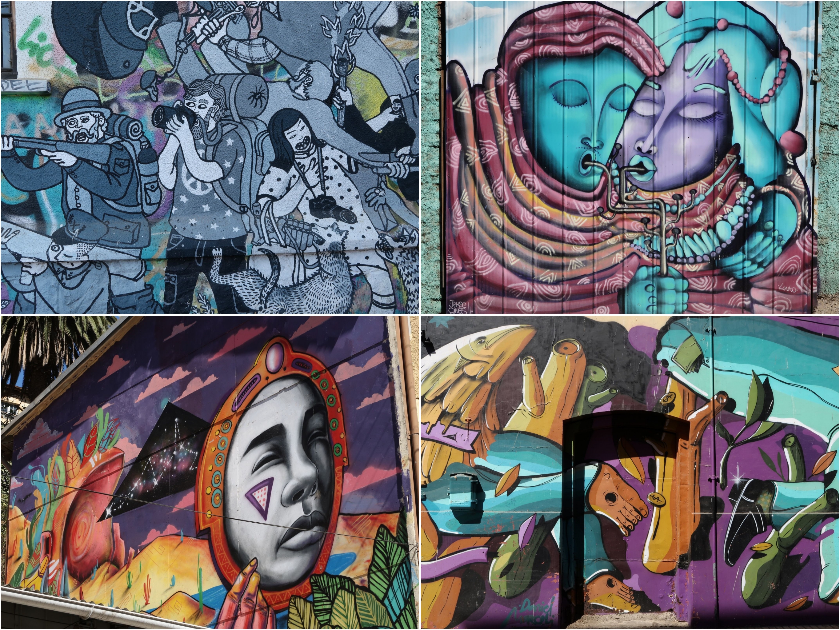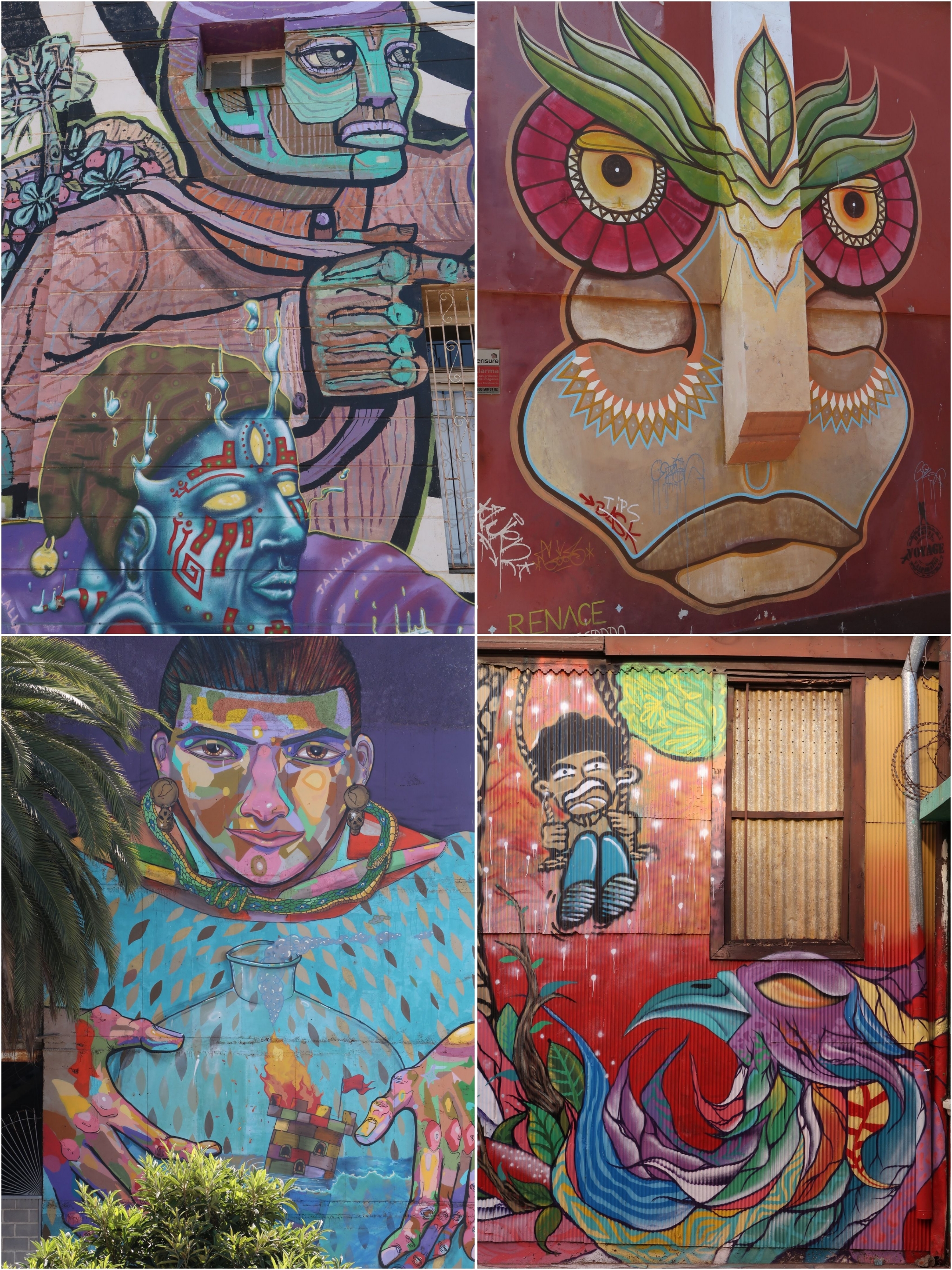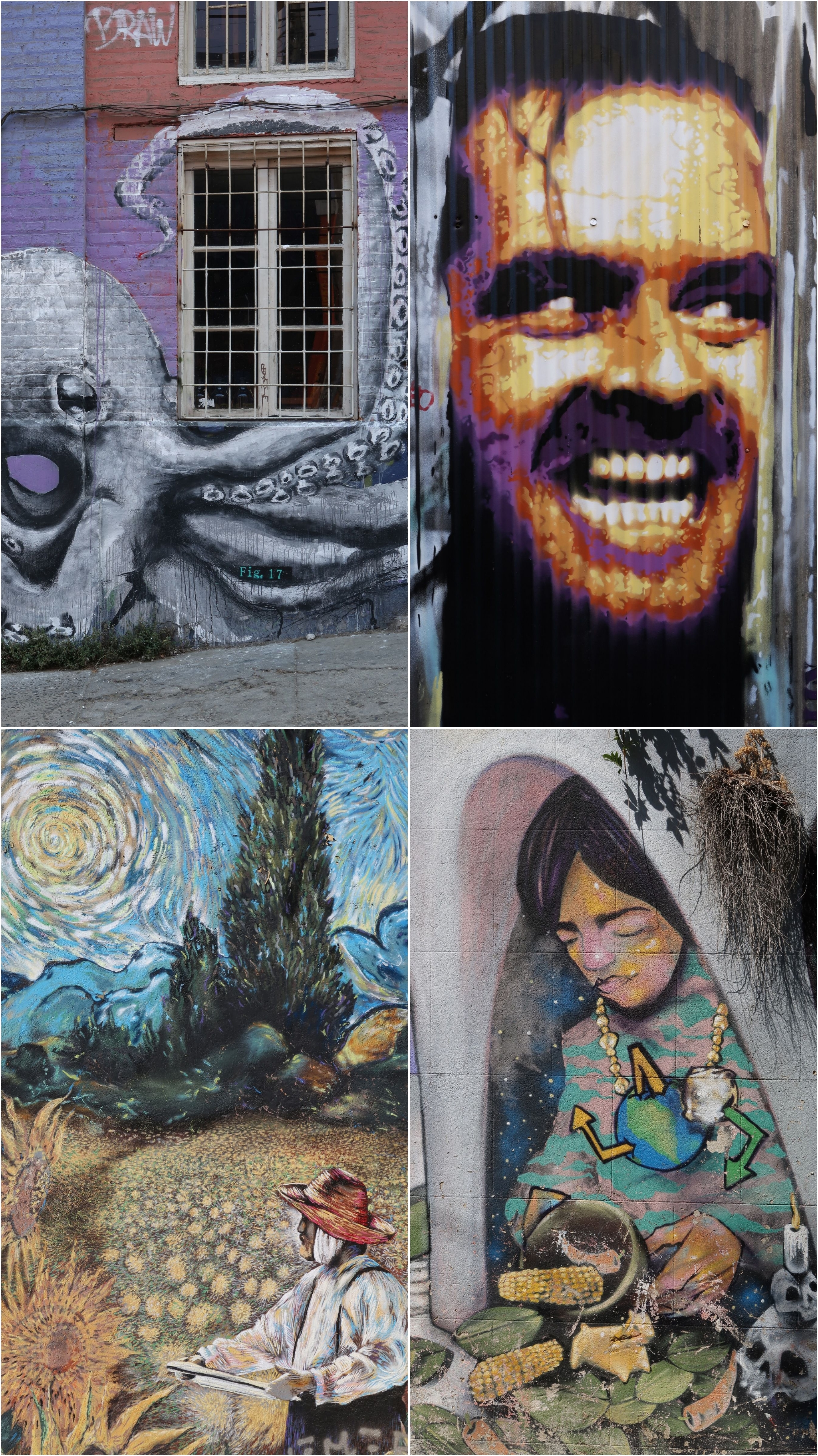 J’arrive en début d’après-midi à Valparaiso et après une brève balade sur les quais je vais dans le centre (dont une partie est classée à l’UNESCO) pour m’adonner à la principale activité que propose la ville : la chasse aux street arts ; saine activité qui – en plus de faire chauffer l’appareil photo – a le mérite de faire travailler le cardio (merci la ville construite à flanc de collines 😥) et le sens de l’orientation (le plan ressemble à tout sauf à un damier 😲).