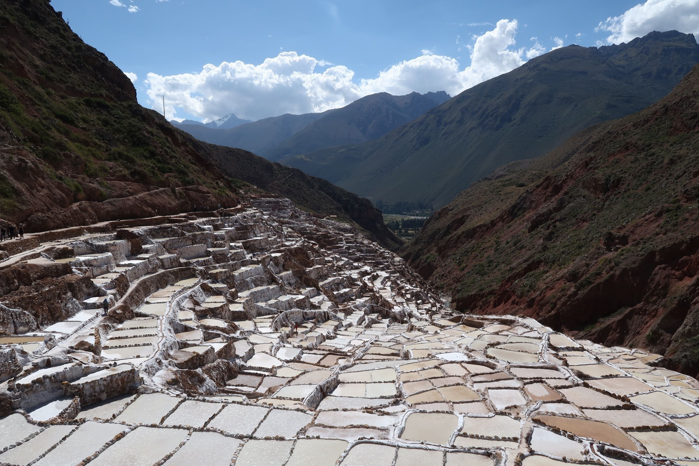 Encore une excursion hors de Cuzco basée sur le même concept que la veille (j’avais réservé les deux avec la même agence en même temps) : quelques arrêts inutiles et deux sites intéressants : le laboratoire agricole de Moray et les terrasses salines de Maras (tous deux de l’époque inca, les salines sont toujours en activité).