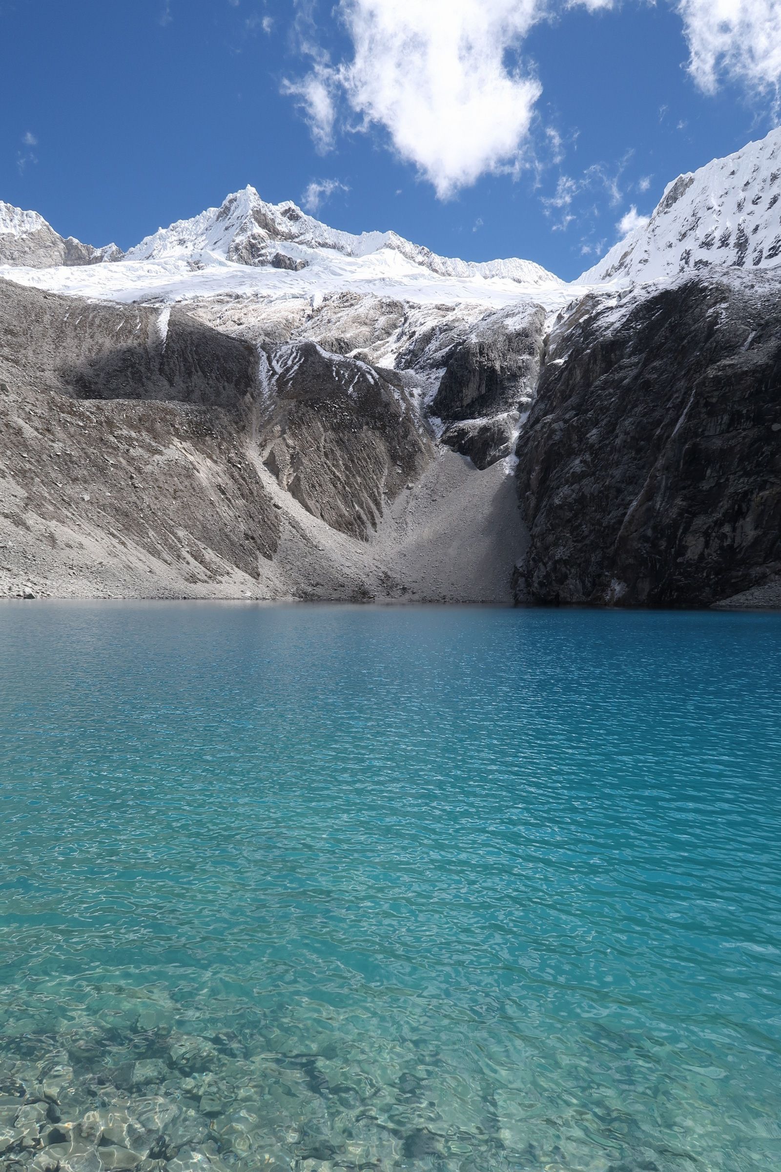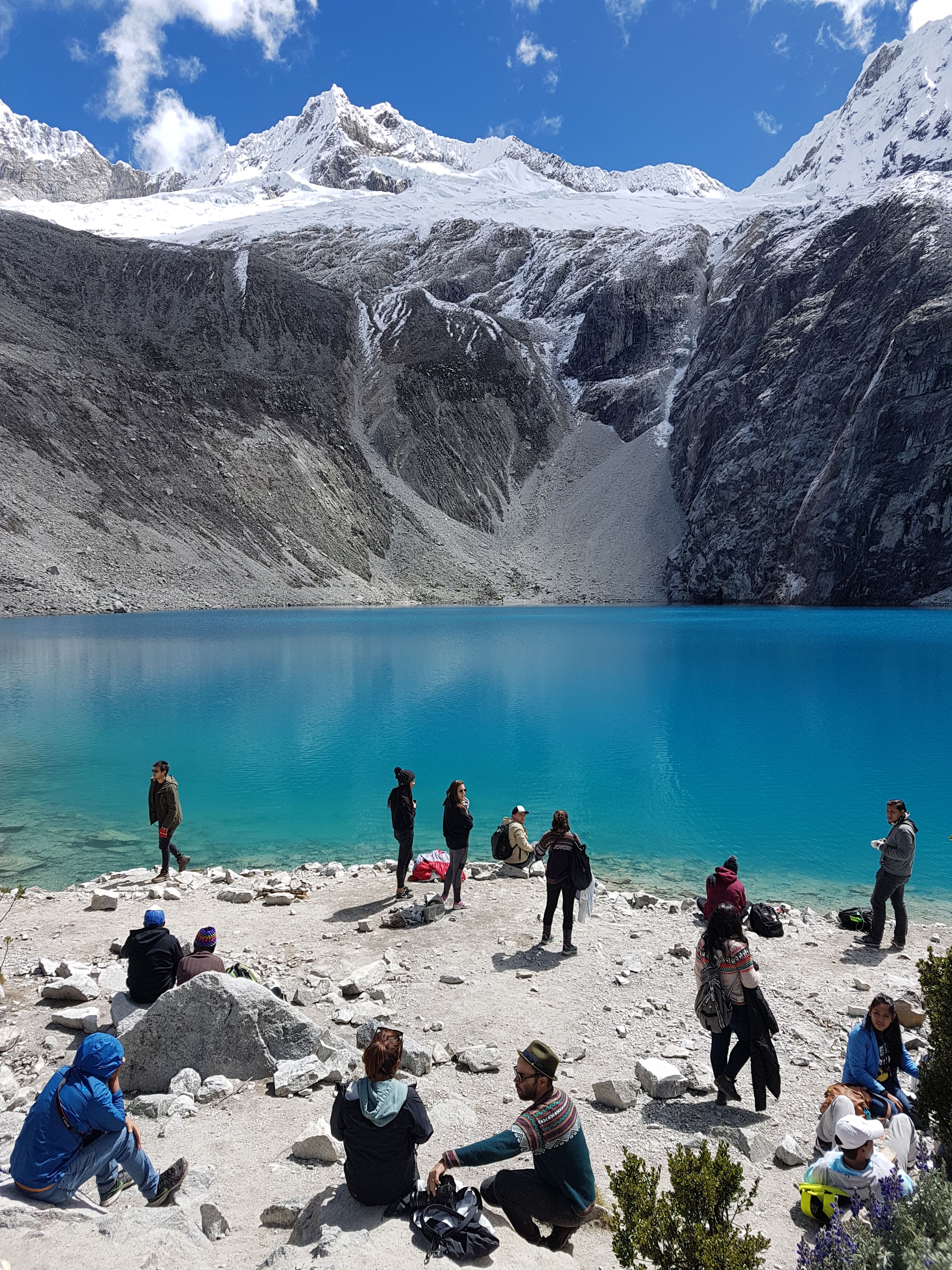 La lagune est jolie mais blindée puisque tous les tours partent de Huaraz en même temps … quoiqu’il en soit les paysages de cordillère où elle se trouve – alias la Cordillera Blanca – valent eux aussi le détour : des 6000 m aux neiges (quasi-)éternelles.