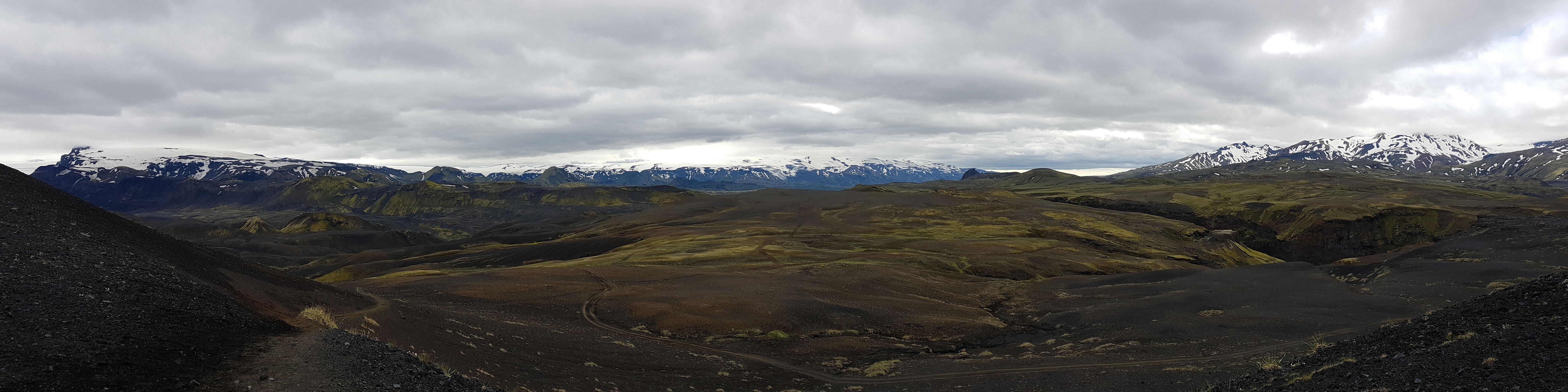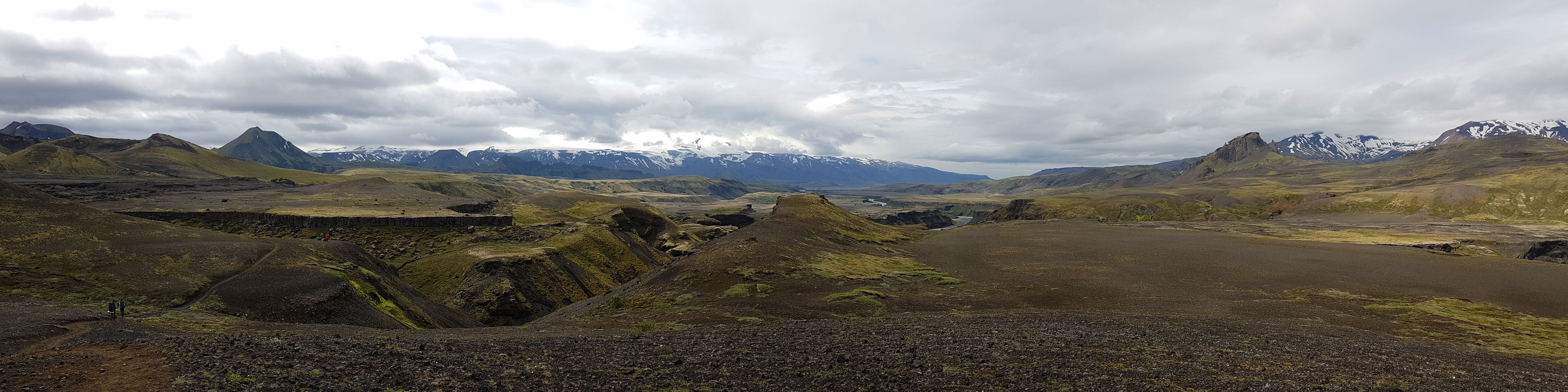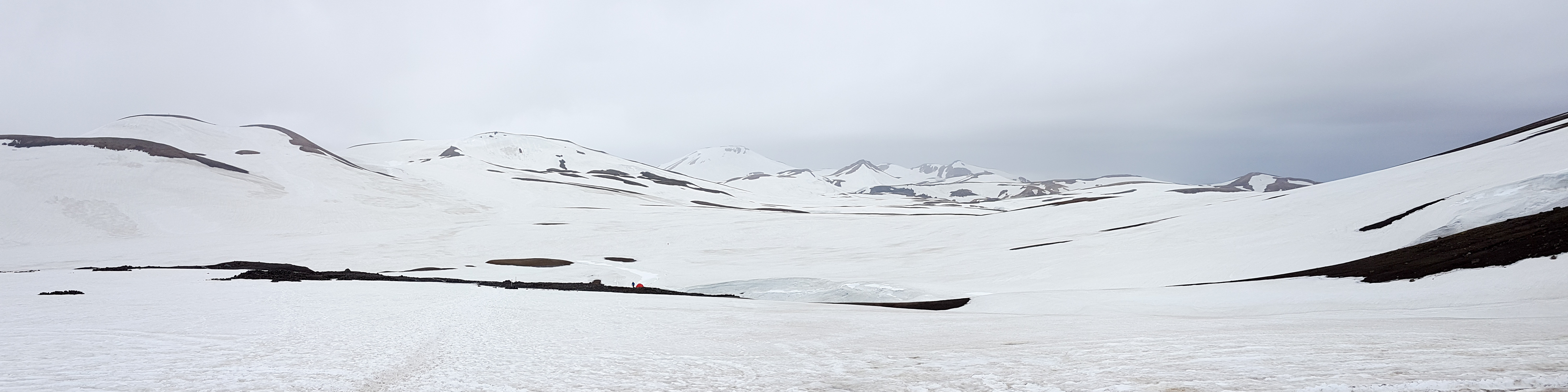 Au final la principale difficulté du trek est de traverser les parties enneigées – déjà bien relou vu que j’ai laissé les rondelles des bâtons de marche à la consigne de Reykjavik … – en faisant bien attention de ne pas terminer dans un trou puisque de nombreux cours d’eau creusent la calotte.