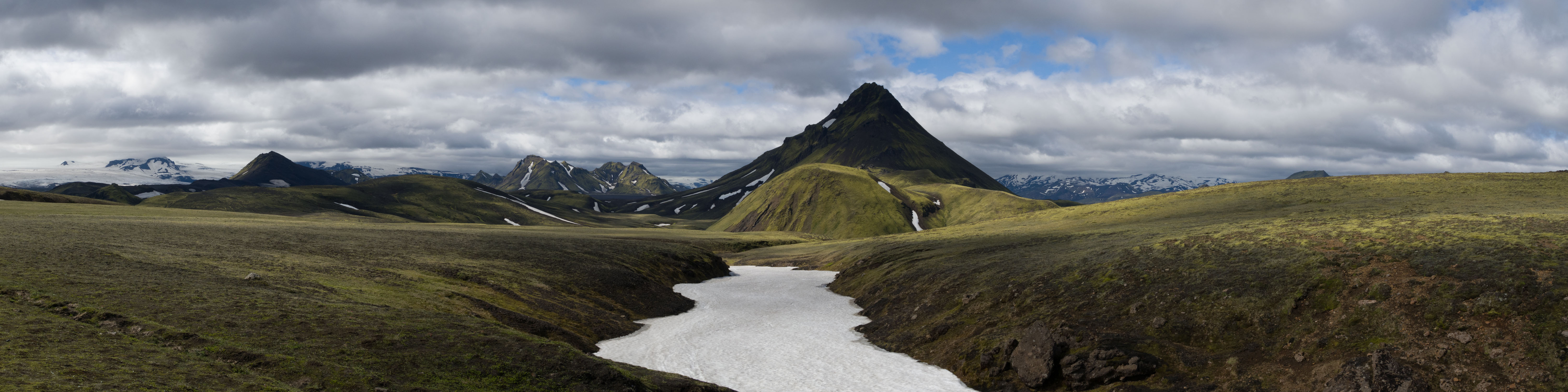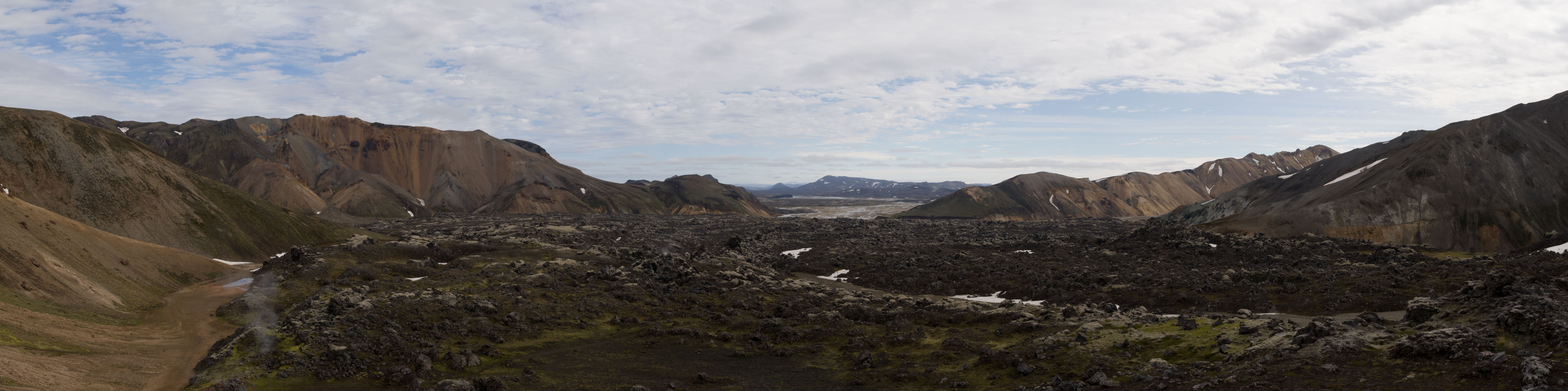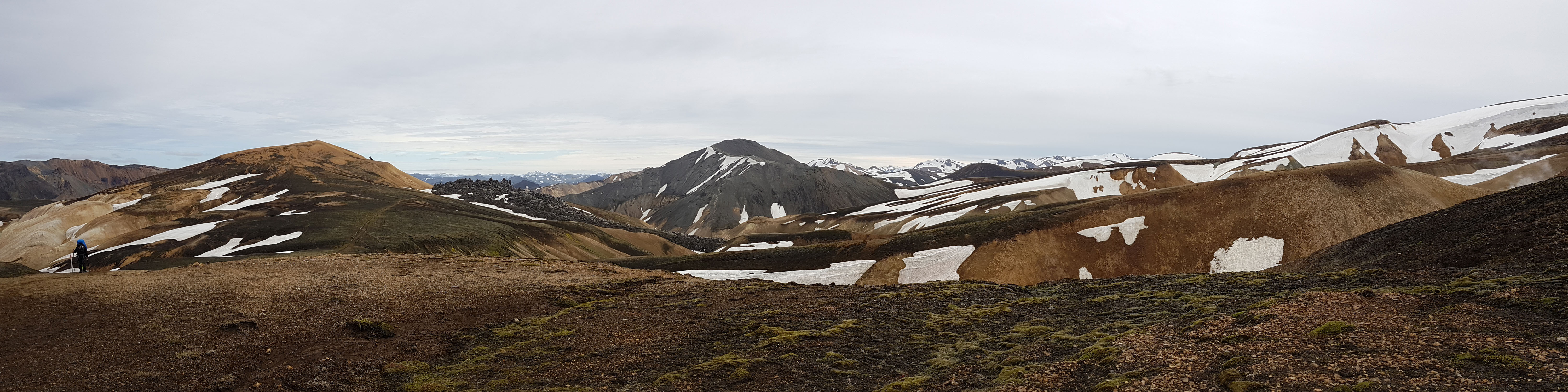 Au final la principale difficulté du trek est de traverser les parties enneigées – déjà bien relou vu que j’ai laissé les rondelles des bâtons de marche à la consigne de Reykjavik … – en faisant bien attention de ne pas terminer dans un trou puisque de nombreux cours d’eau creusent la calotte.